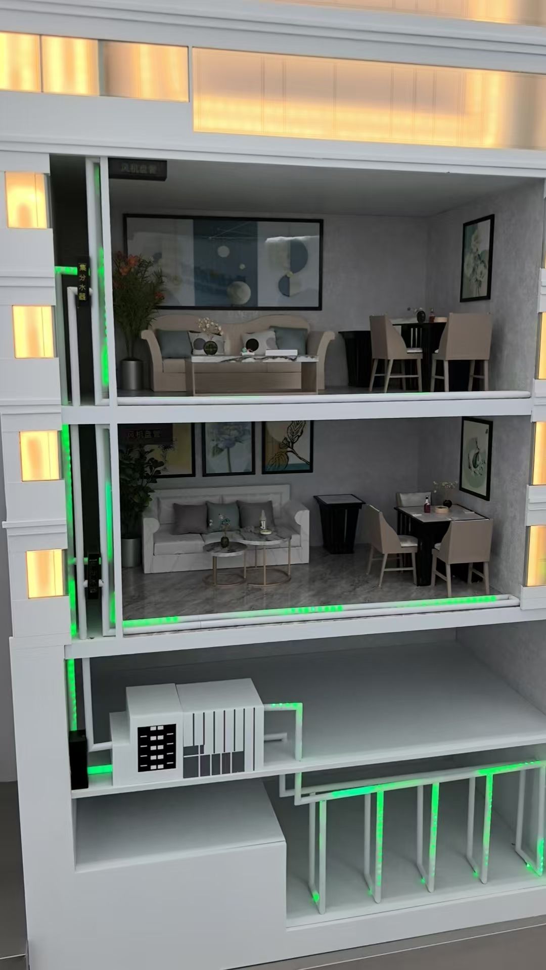 作为绿色建造产业链的链主企业,飞龙集团在项目建设中积极引入绿色建筑和绿色建材的创新技术。集团携手清华大学建筑设计研究院,研发了 FL 绿建装配式多高层钢结构住宅建筑体系,并在项目中运用了超低能耗门窗、新风热回收系统、太阳能光伏等多项绿色节能技术。